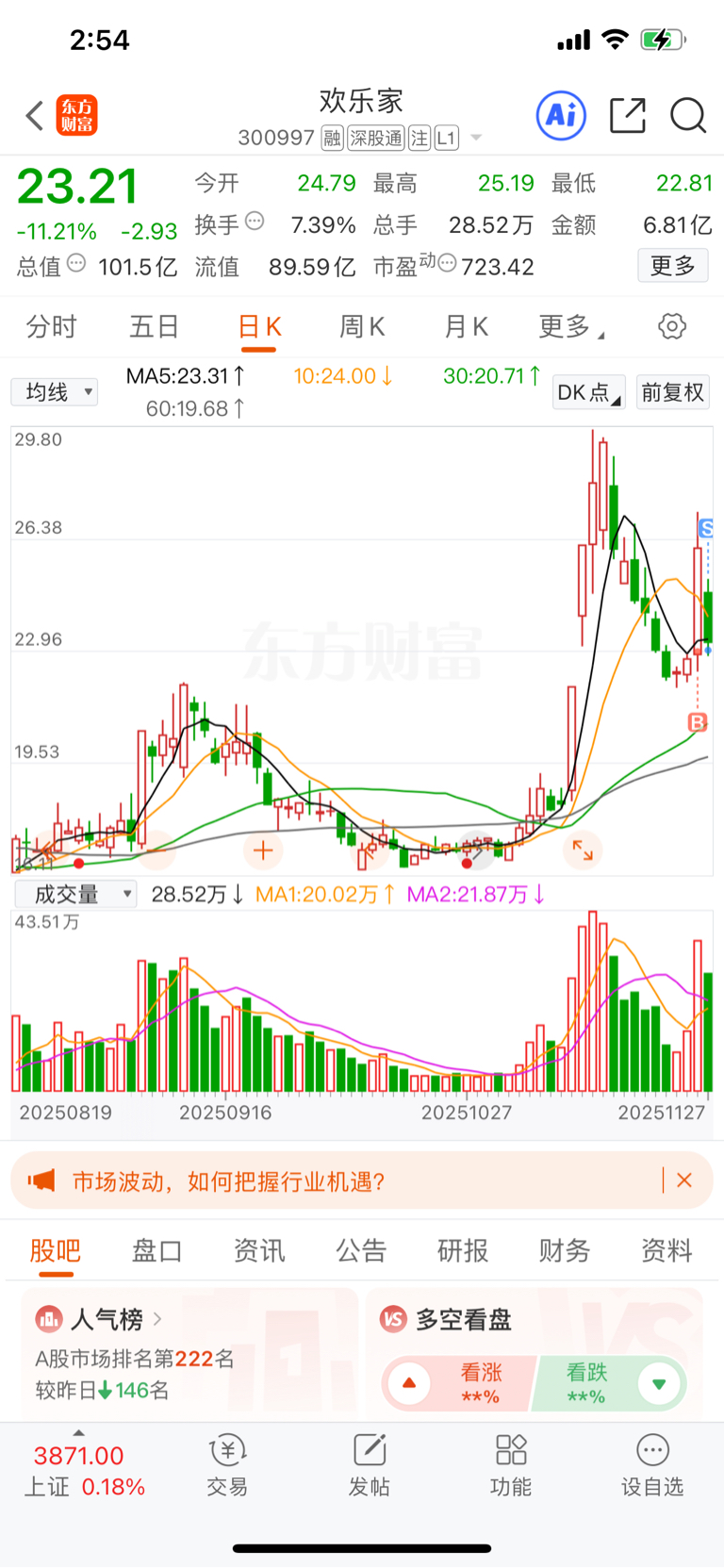 $欢乐家(SZ300997)$ 买了个寂寞赚十块钱