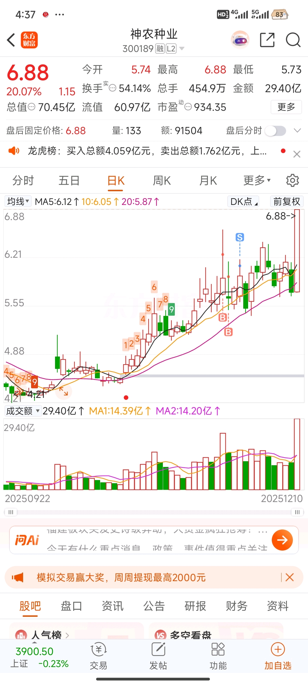 $欢乐家(SZ300997)$ 上次$神农种业(SZ300189)$ 给我洗下去了,这次欢乐家,家人们要拿住啊,一模一样的洗盘