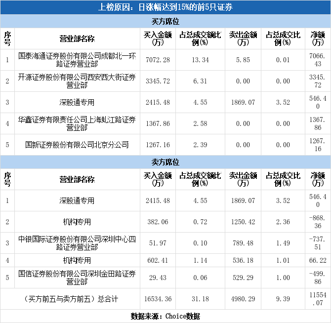 多主力现身龙虎榜,欢乐家涨停(12-15)