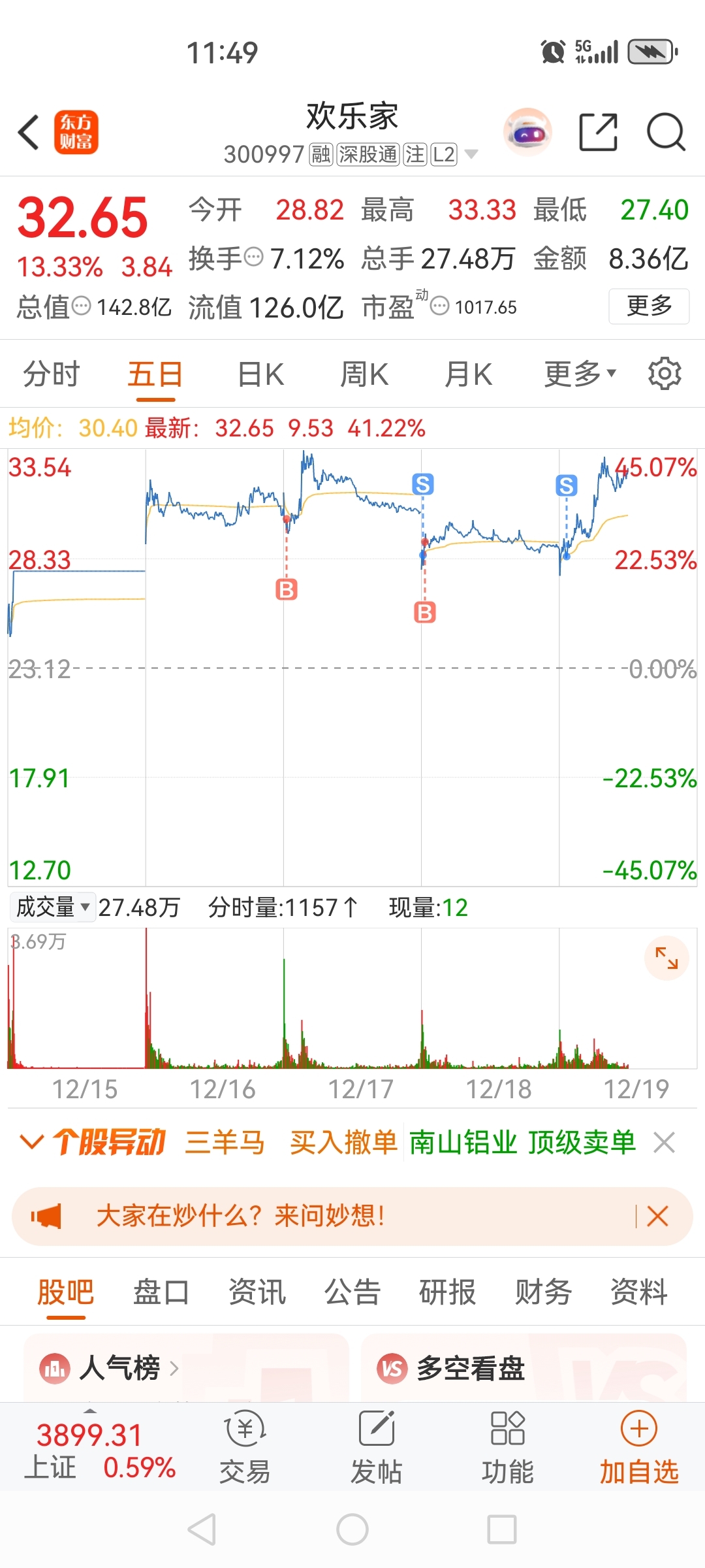 $欢乐家(SZ300997)$ 一口老血吐光,进3次亏3次,无缘