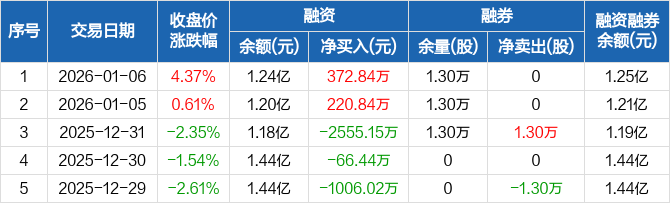 欢乐家:融资净买入372.84万元,融资余额1.24亿元(01-06)