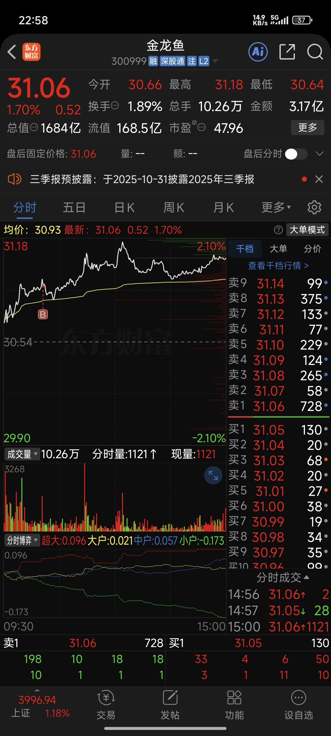 $金龙鱼(SZ300999)$ 这波吃最少10%以上,不然不走