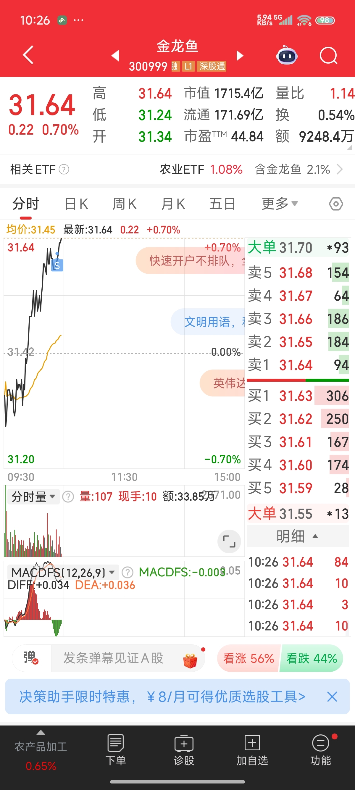 $金龙鱼(SZ300999)$ 成本价出了。最近节奏没做好,尽量把手里股票出掉。整理一下。