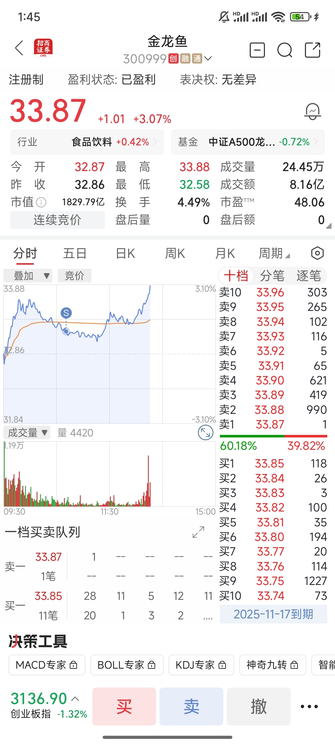 $金龙鱼(SZ300999)$ 把我洗出去了