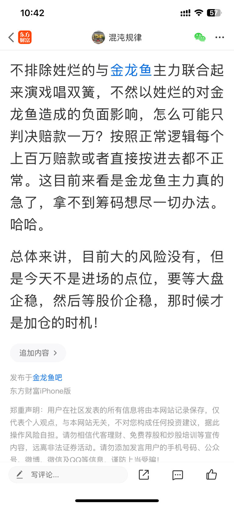 温馨提示: 1.根据《证券法》规定,禁止编造、传播虚假信息或者误导性信息,扰乱证券市场;2.用户在本社区发表的所有资料、言论等仅代表个人观点,与本网站立场无关,不对您构成任何投资建议。用户应基于自己的独立判断,自行决定证券投资并承担相应风险。《东方财富社区管理规定》