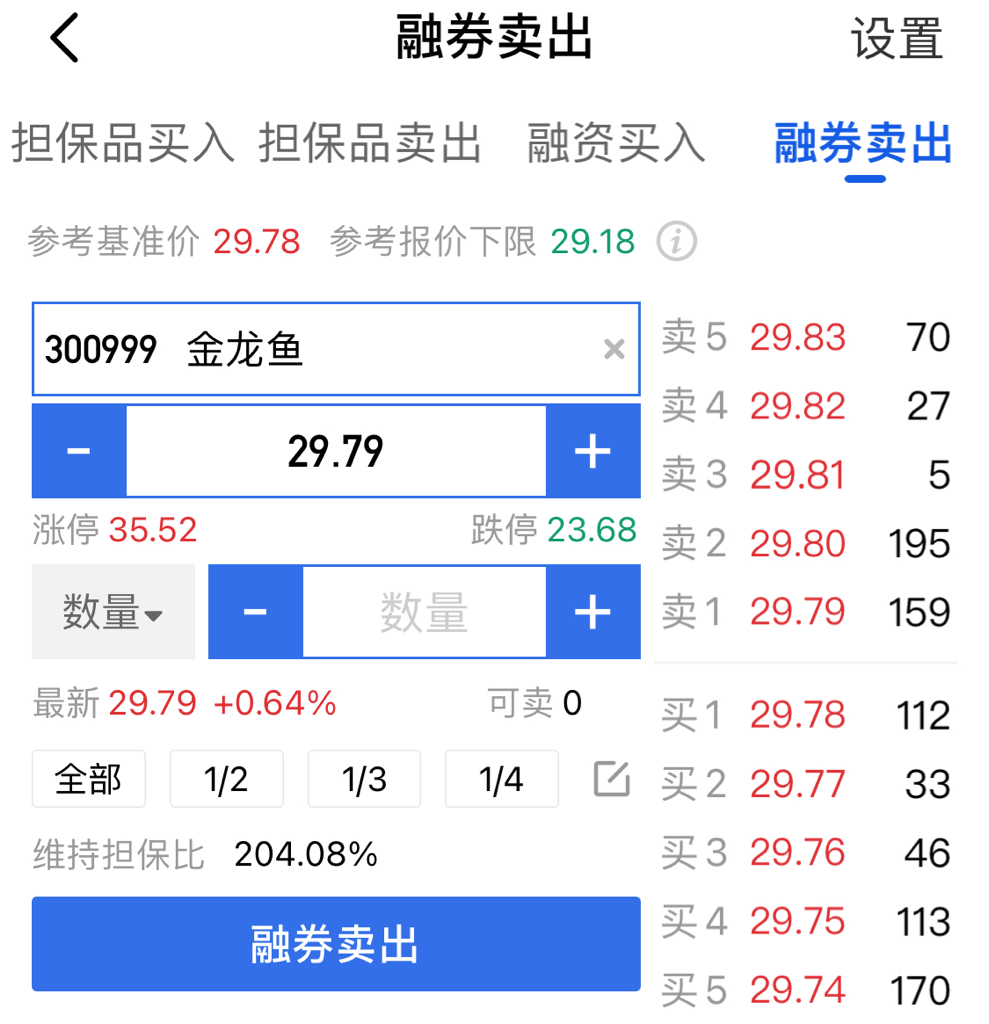 $金龙鱼(SZ300999)$ 为什么不能继续融劵看空?居然没有额度?#复盘记录#