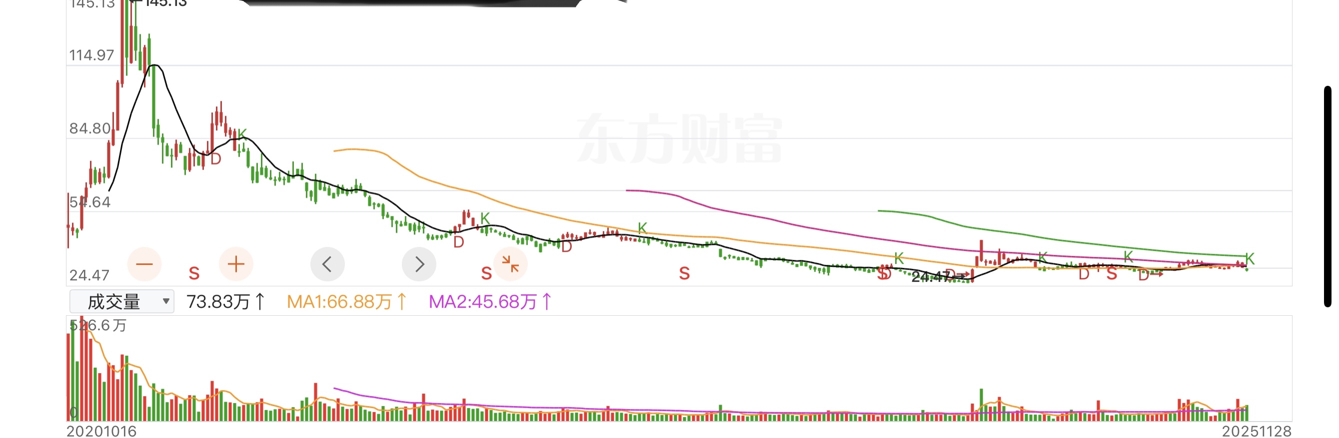在2022年,我曾经发帖说我们家己经有十几年没吃过金龙鱼相关食用油产品,有喷子说我是穷鬼吃不起,也公开说这票会大割韭菜,这几年金龙鱼从100多块钱一路跌至当前的价格。