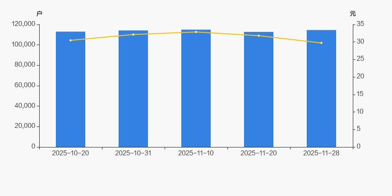 2025年10月20日至今,公司股东户数有所增长,区间涨幅为1.38%。2025年10月20日至2025年11月28日区间股价下降2.46%。