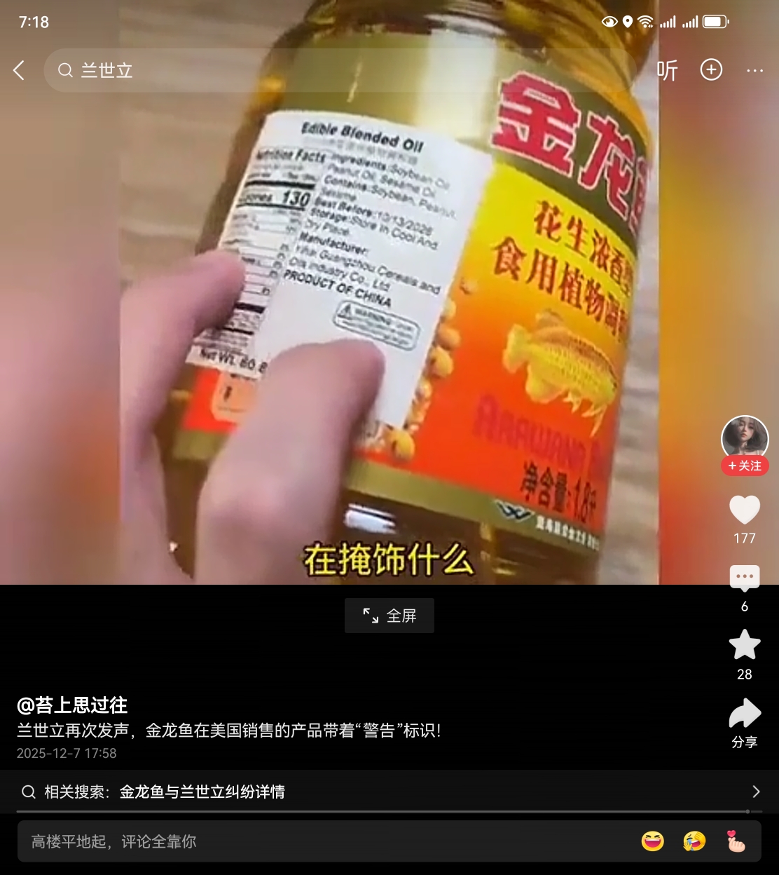 $金龙鱼(SZ300999)$ 美国版的金龙鱼油,警告有致癌物质