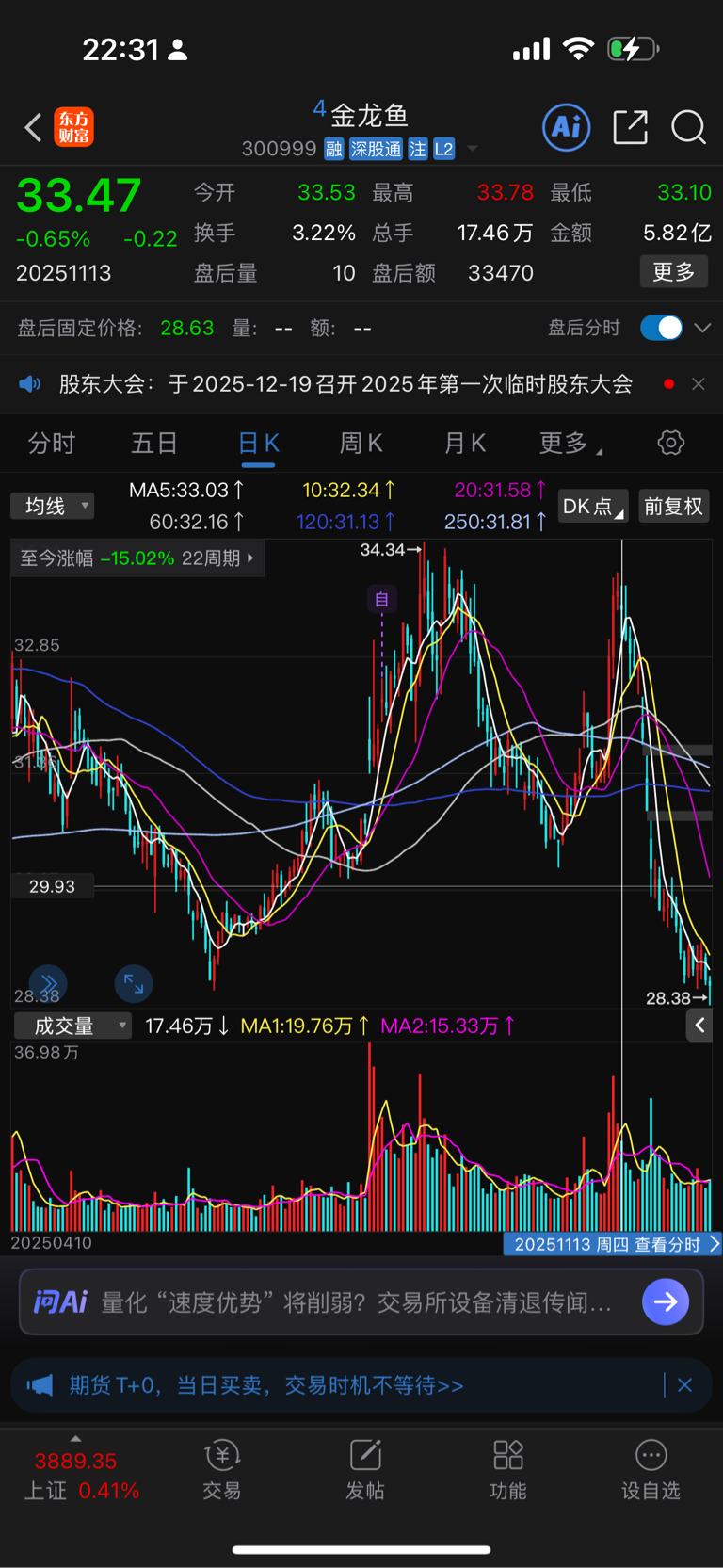$金龙鱼(SZ300999)$ 这波回调15个点伴随着利空新闻,跟着白酒海天一路下杀,破位探底,真是干的漂亮!