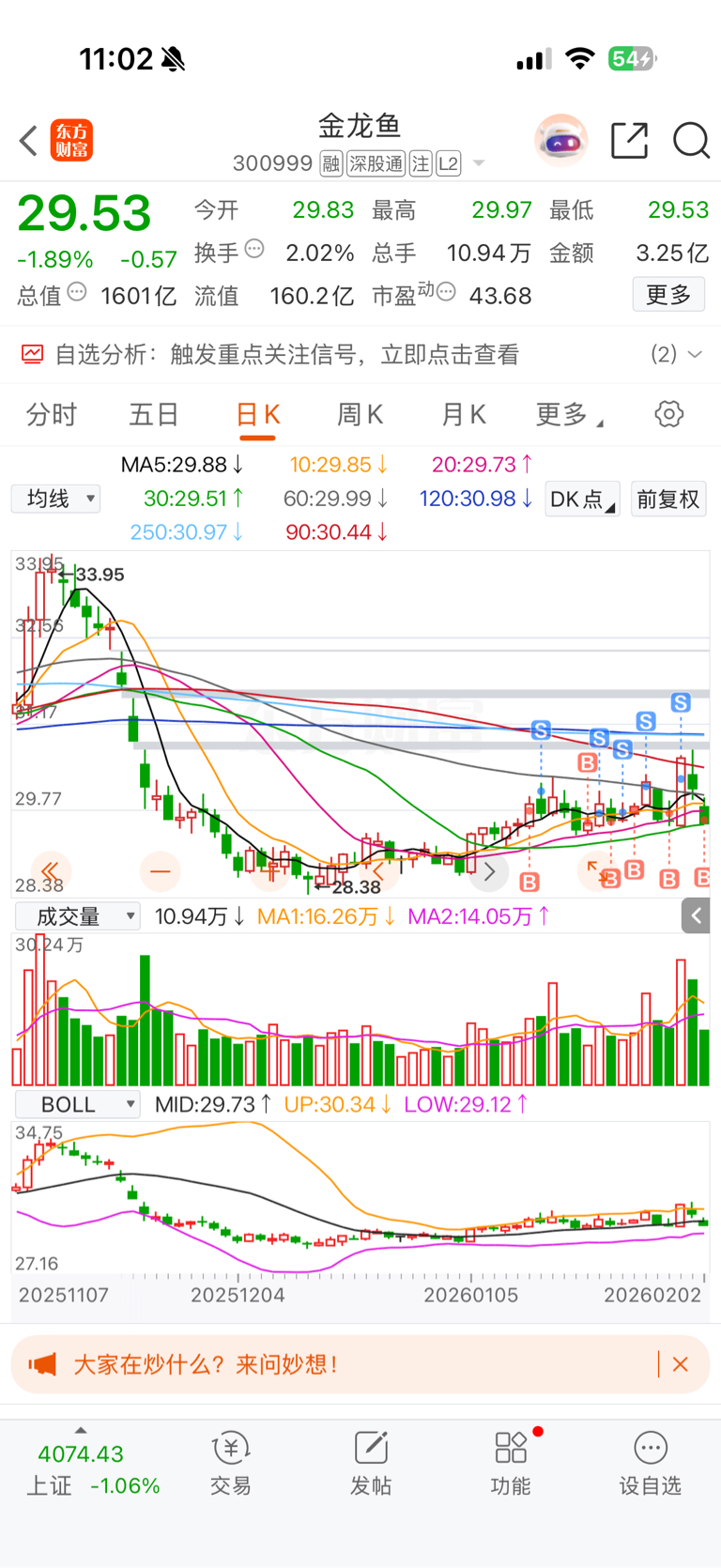 $金龙鱼(SZ300999)$ 希望能挣点烟钱
