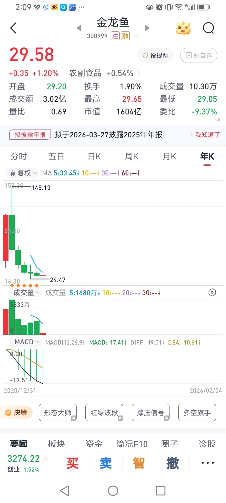 $金龙鱼(SZ300999)$ 三年前做一个买入的决定,三年后是两种命运,财富的认知能力的变现,自作聪明不信趋势去抄底的最后结局都挺惨。