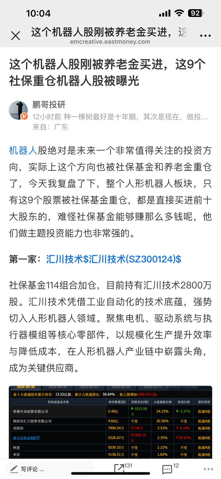 被社保基金重仓的机器人股票,现在还在低位未来十倍奉还,干他