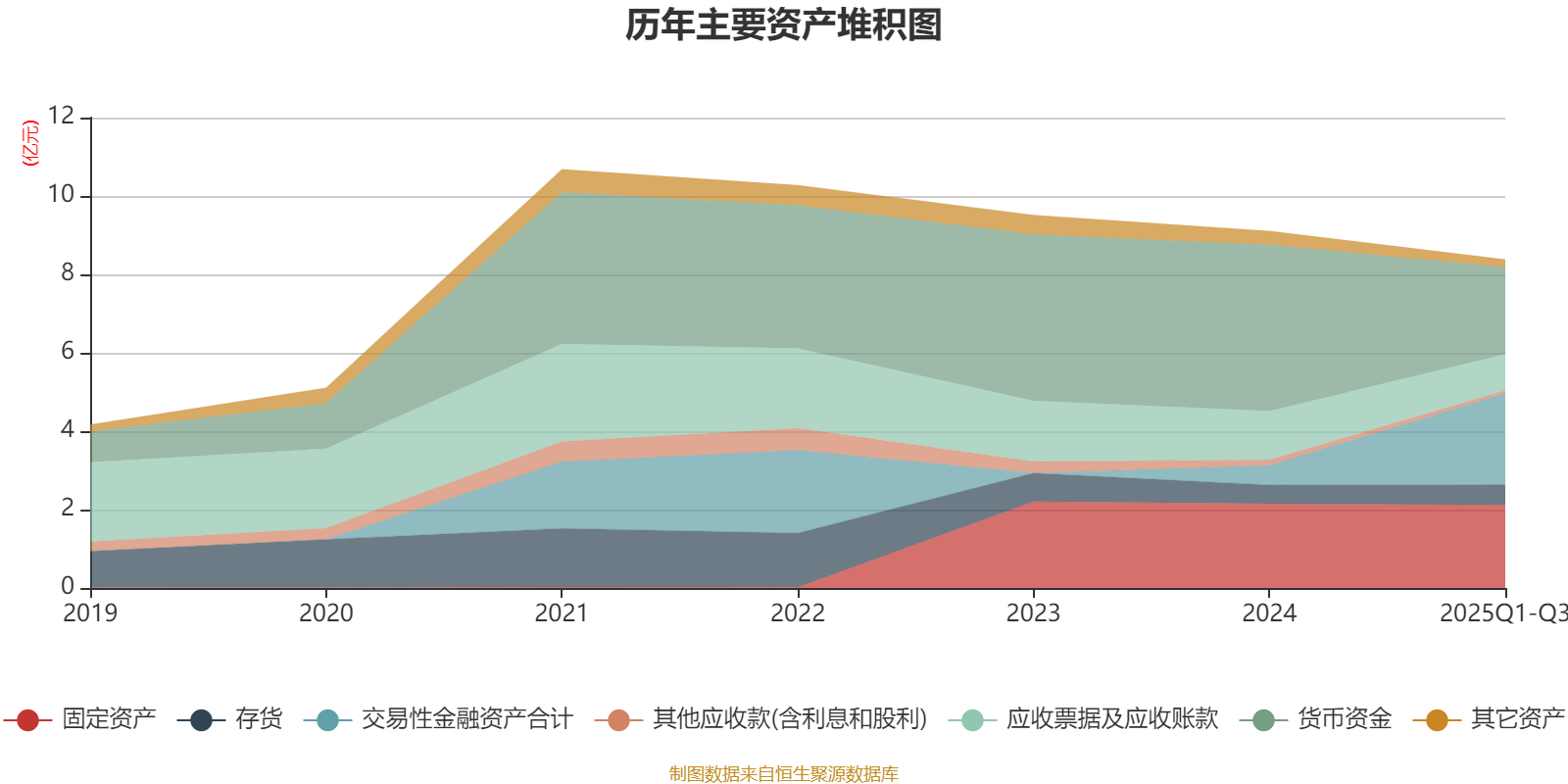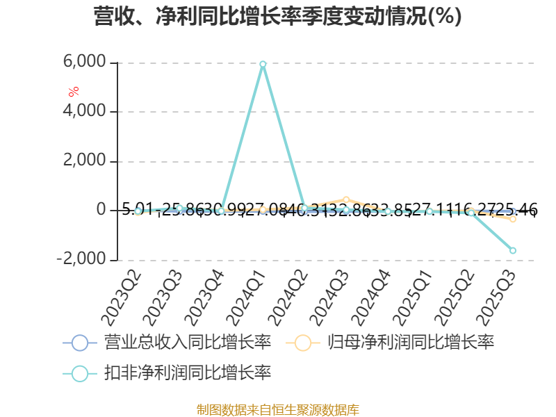 资产重大变化方面,截至2025年三季度末,公司交易性金融资产合计较上年末增加363.35%,占公司总资产比重上升22.25个百分点;货币资金较上年末减少47.82%,占公司总资产比重下降20.18个百分点;应收票据及应收账款较上年末减少25.42%,占公司总资产比重下降2.58个百分点;固定资产较上年末减少1.6%,占公司总资产比重上升1.64个百分点。