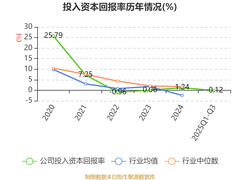 盈利能力方面, 2025年前三季度公司加权平均净资产收益率为0.05%,同比下降0.52个百分点。公司2025年前三季度投入资本回报率为-0.12%,较上年同期下降0.48个百分点。
