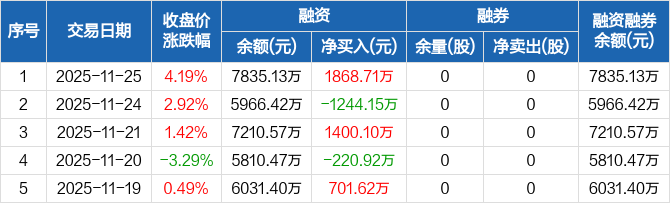 凯淳股份:融资净买入1868.71万元,融资余额7835.13万元(11-25)