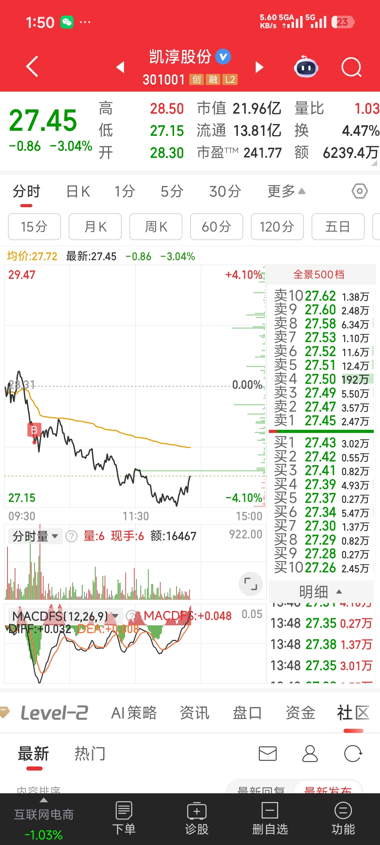 $凯淳股份(SZ301001)$ 恶意打压股价27.5元有200万手卖单