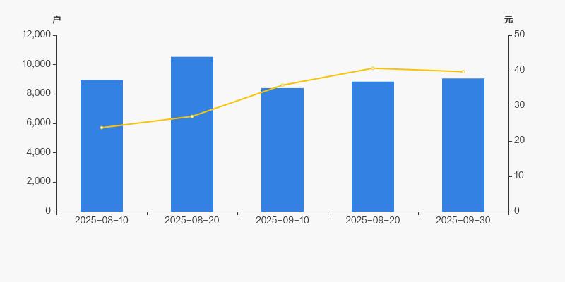 2025年8月10日至今,公司股东户数有所增长,区间涨幅为1.18%。2025年8月10日至2025年9月30日区间股价上涨66.79%。
