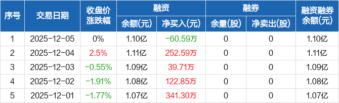 崧盛股份:融资净偿还60.59万元,融资余额1.1亿元(12-05)