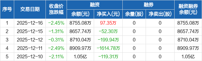 崧盛股份:融资净买入97.35万元,融资余额8755.08万元(12-16)