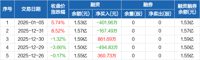 崧盛股份:融资净偿还401.96万元,融资余额1.53亿元(01-05)
