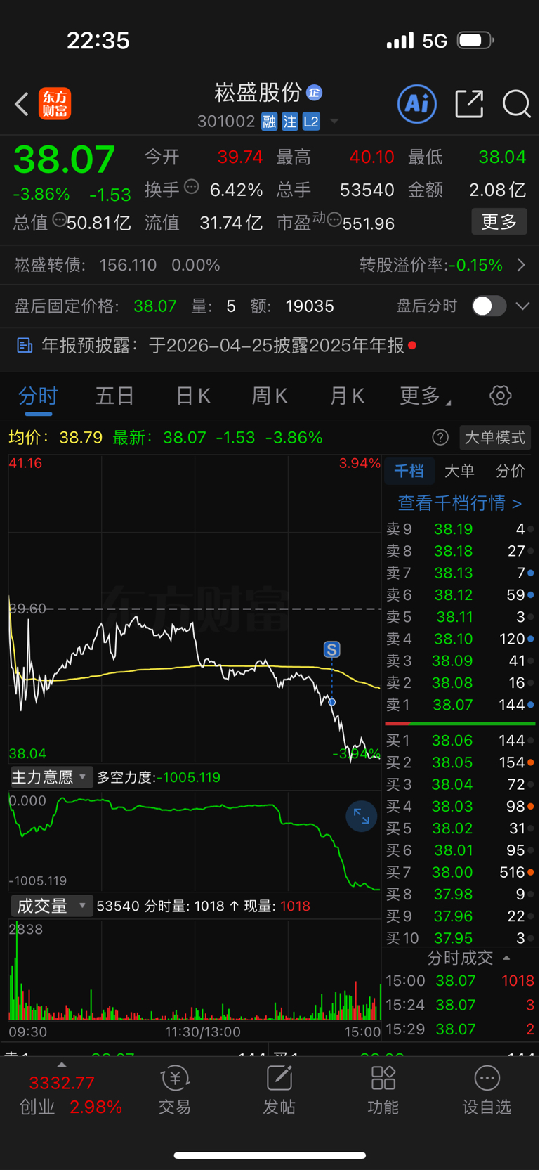 $崧盛股份(SZ301002)$ 我说这怎么走成这样,大股东减持提前泄露了吧,还好走坏就割了