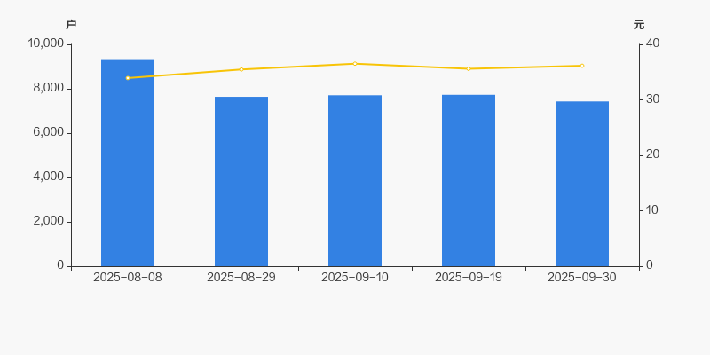 2025年8月8日至今,公司股东户数显著下降,区间跌幅为20.10%。2025年8月8日至2025年9月30日区间股价上涨6.53%。