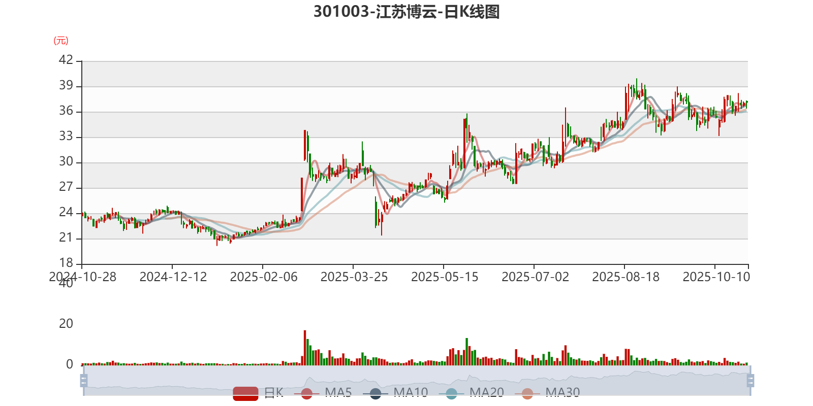 中证智能财讯江苏博云(301003)10月28日披露2025年第三季度报告。前三季度公司实现营业总收入4.2亿元,同比下降12.24%;归母净利润8132.56万元,同比下降19.16%;扣非净利润8226.87万元,同比下降13.06%;经营活动产生的现金流量净额为1.36亿元,同比增长65.32%;报告期内,江苏博云基本每股收益为0.82元,加权平均净资产收益率为6.89%。
