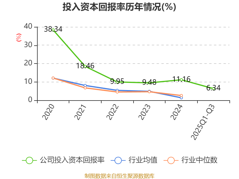盈利能力方面, 2025年前三季度公司加权平均净资产收益率为6.89%,同比下降1.64个百分点。公司2025年前三季度投入资本回报率为6.34%,较上年同期下降1.76个百分点。