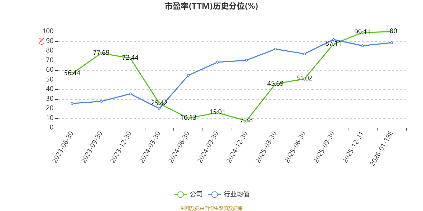 以本次披露业绩预告均值计算,公司近年市盈率(TTM)图如下所示: