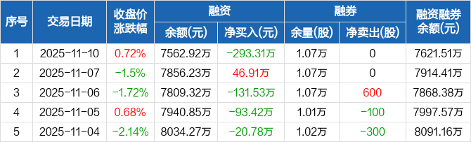 嘉益股份:融资净偿还293.31万元,融资余额7562.92万元(11-10)
