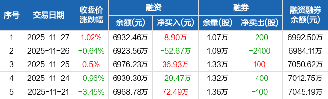 嘉益股份:融资净买入8.9万元,融资余额6932.46万元(11-27)