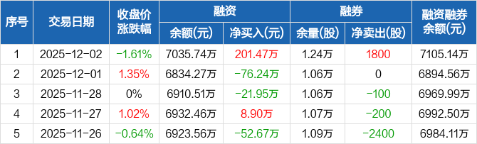 嘉益股份:融资净买入201.47万元,融资余额7035.74万元(12-02)