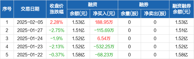 超捷股份:融资净买入188.95万元,融资余额1.53亿元(02-05)