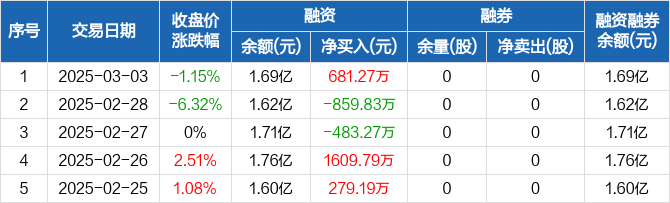 超捷股份:融资净买入681.27万元,融资余额1.69亿元(03-03)