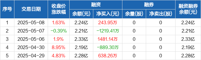超捷股份:融资净买入243.95万元,融资余额2.24亿元(05-08)