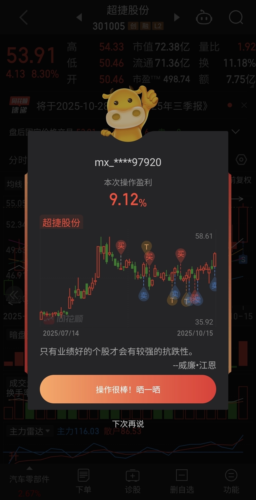 $超捷股份(SZ301005)$ 尾盘拉高清仓了。下跌找机会再低吸。好股。