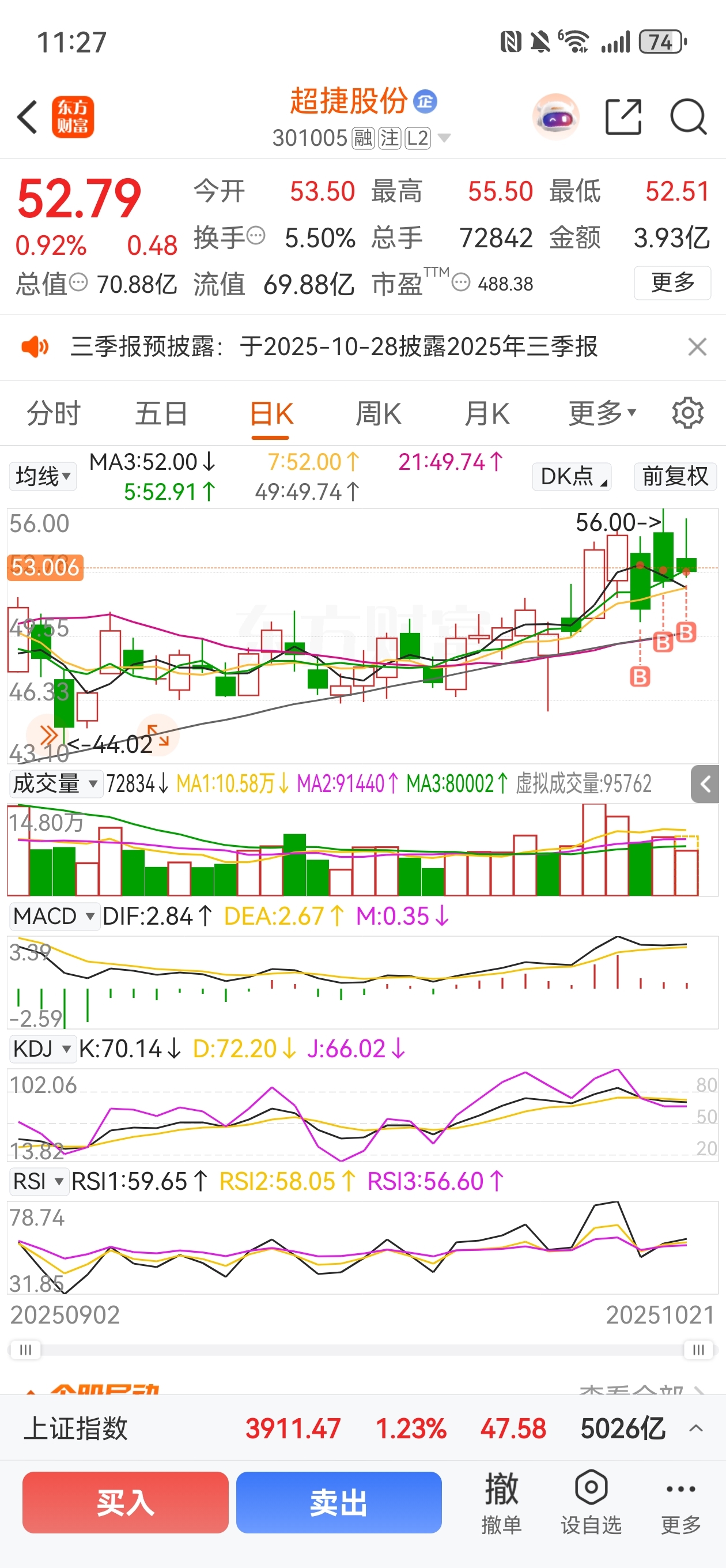 $超捷股份(SZ301005)$ 两天高开挂52.88补仓,补到了