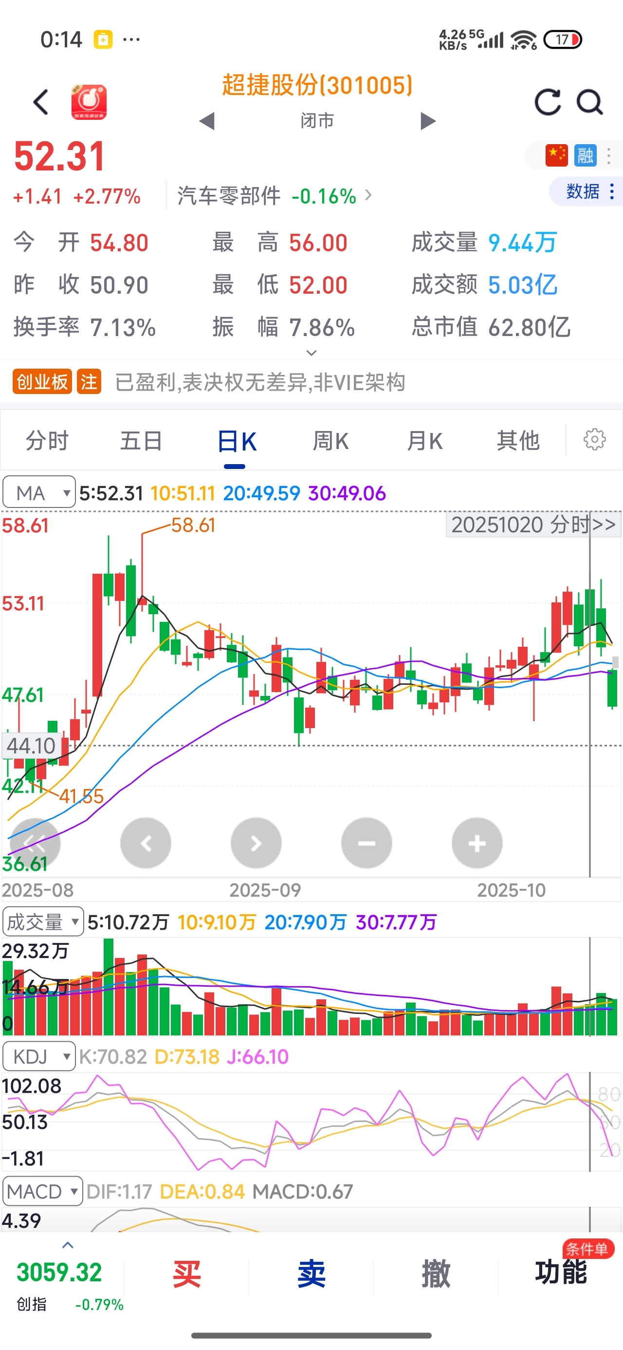 $超捷股份(SZ301005)$ 上涨柱子是绿色的是代表什么?