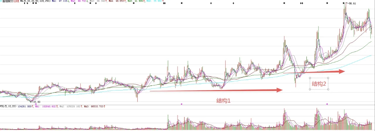 今天盘中完成了调整,短线走势比预期的强。收盘来看,今天的K线还是很不错的,意味着阶段性低点成立了。短线可能有调整,但是方向是上行。短暂快速挖坑之后,快速上来也是正常的。图中标注的大型结构1突破,意味着股价处在比较大的上涨趋势。结构2是结构1突破后的回踩,意味着后期有波段上涨。接下来,股价还会逐步上行,开启波段上涨。