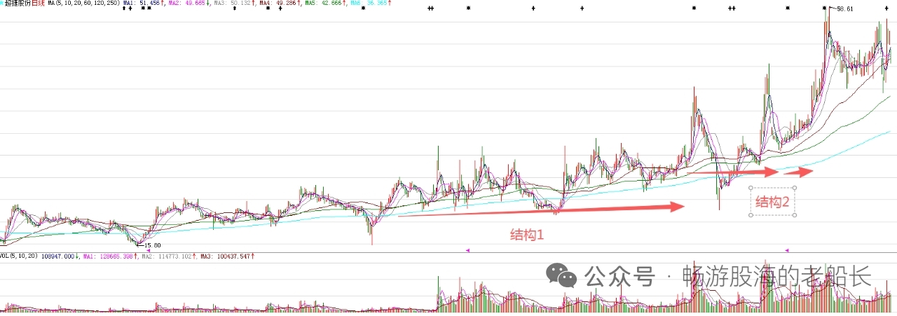 昨天出了减持信息,干扰了短线走势,导致今天跌幅比较明显。短线来看,下周一股价还有惯性下探。但是从周期面来看,今天是第五个有效周期,下周一大概率就探底回升,走出企稳K线了。图中标注的大型结构1突破,意味着股价处在比较大的上趋势。结构2是结构1突破后的回踩,意味着后期有波段上涨。近期的中期震荡,是结构2突破后的回踩,是正常的调整。