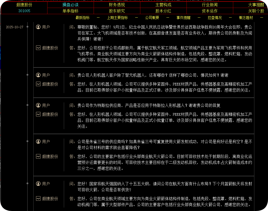 “公司目前业务主要为商业火箭箭体结构件制造,包括箭体大部段(壳段)、整流罩、燃料贮箱、发动机阀门等。”