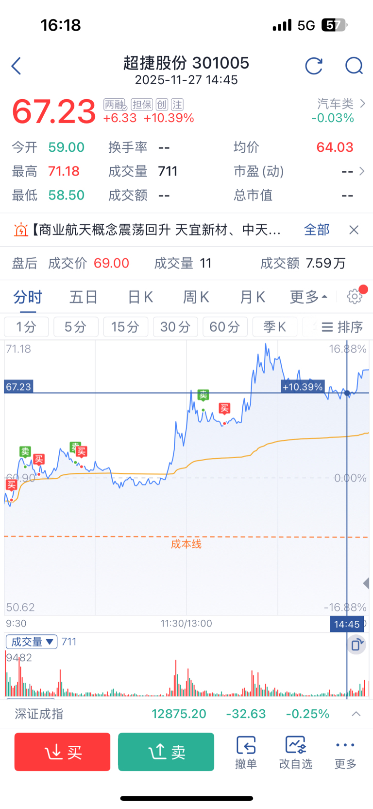 $超捷股份(SZ301005)$ 第一次锻炼 做踢,结果卖飞500股