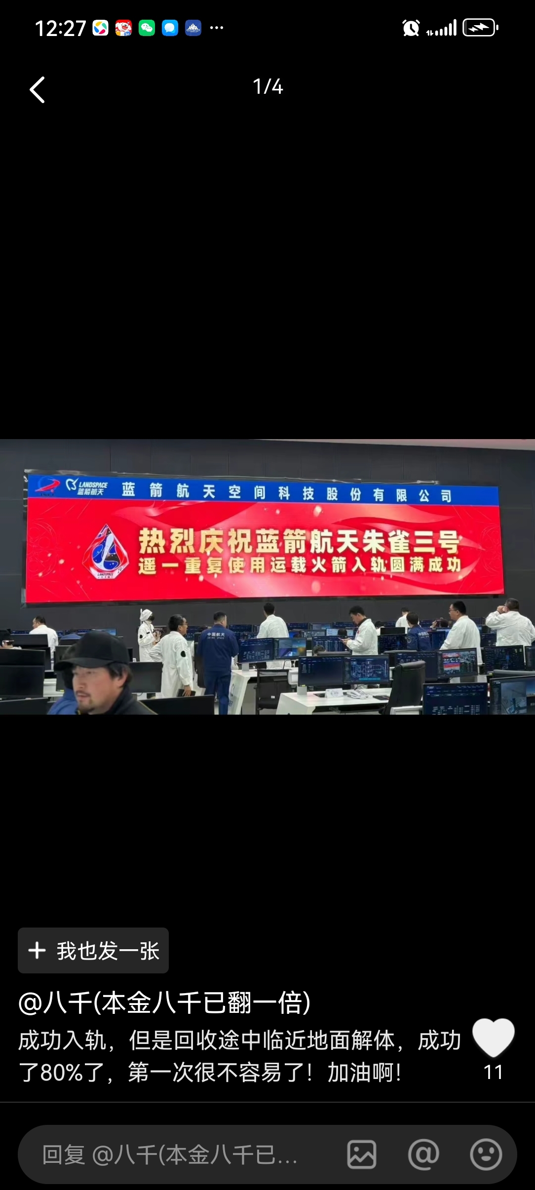 大红屏,确实还可以,虽然回收炸了,但已经很可以了,入轨成功就还有后续,开盘接