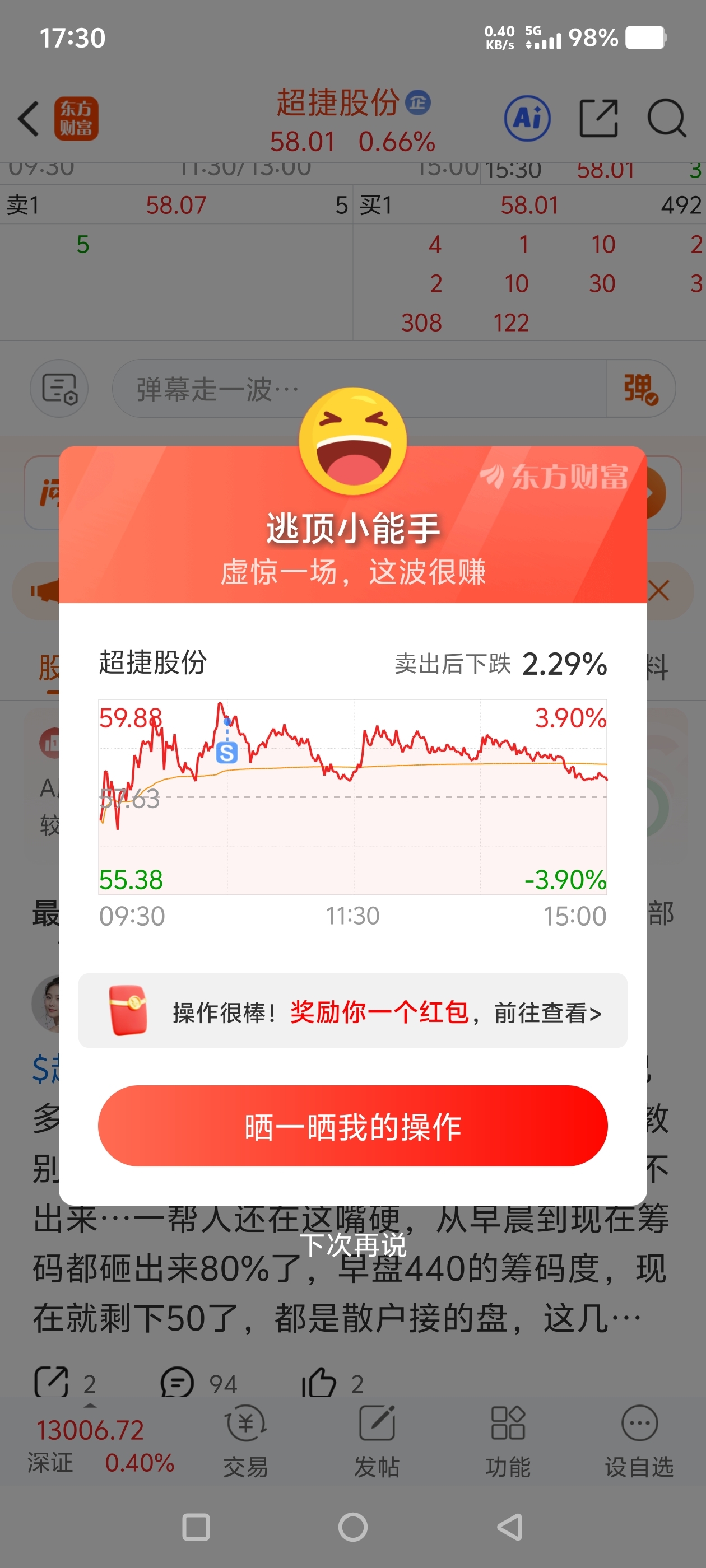 $超捷股份(SZ301005)$ 虽然跑的快,但是是昨天最高点进来的,