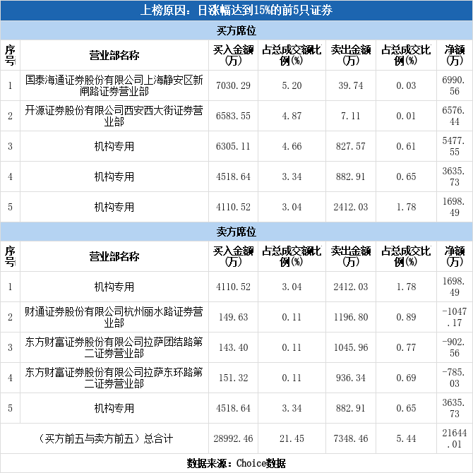 多主力现身龙虎榜,超捷股份涨停(12-05)