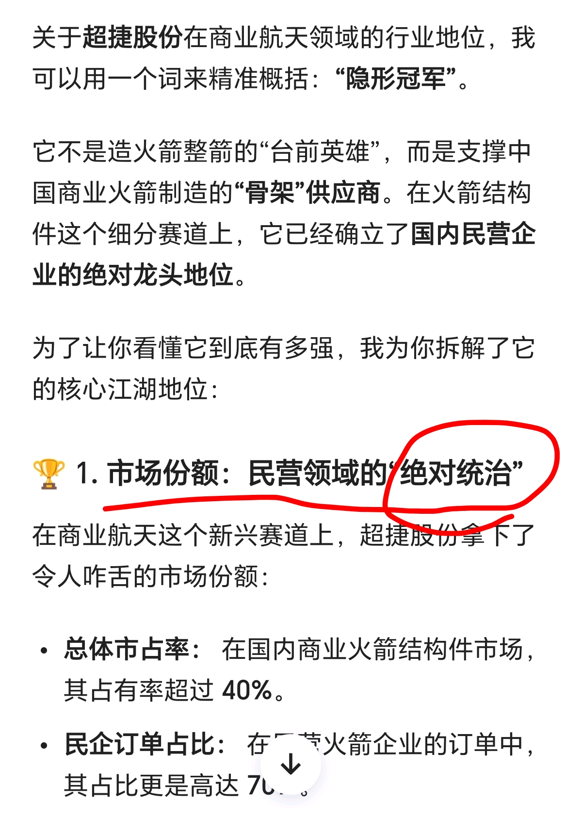 $超捷股份(SZ301005)$ 超捷股份商业航天江湖地位?六个字形容 绝对龙头地位