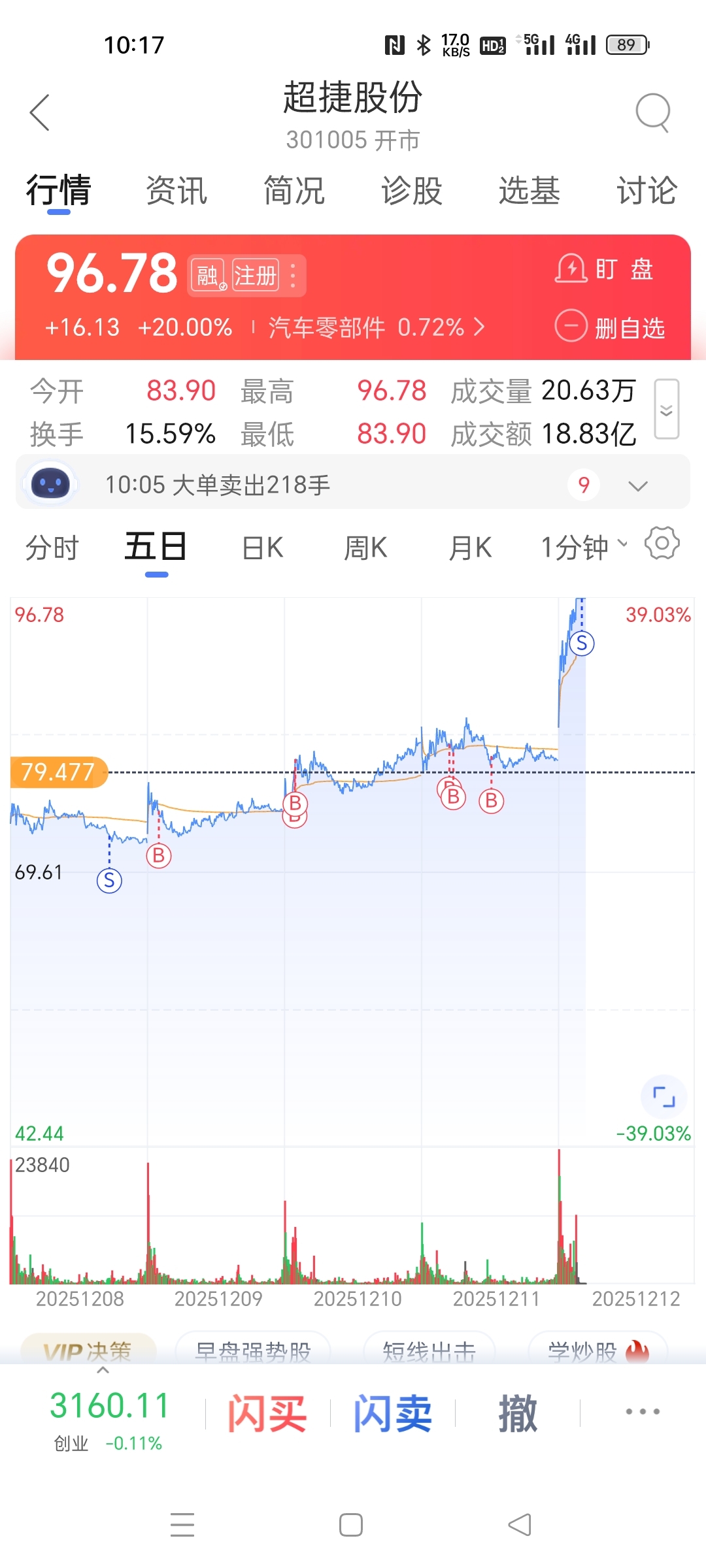 $超捷股份(SZ301005)$ 卖了,祝愿还在车上的继续大涨,大涨!!!发财