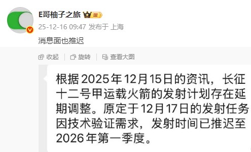 CZ十二甲已经延期到明年一季度了,肯定是技术环节原因,不是简单天气影响能解释的