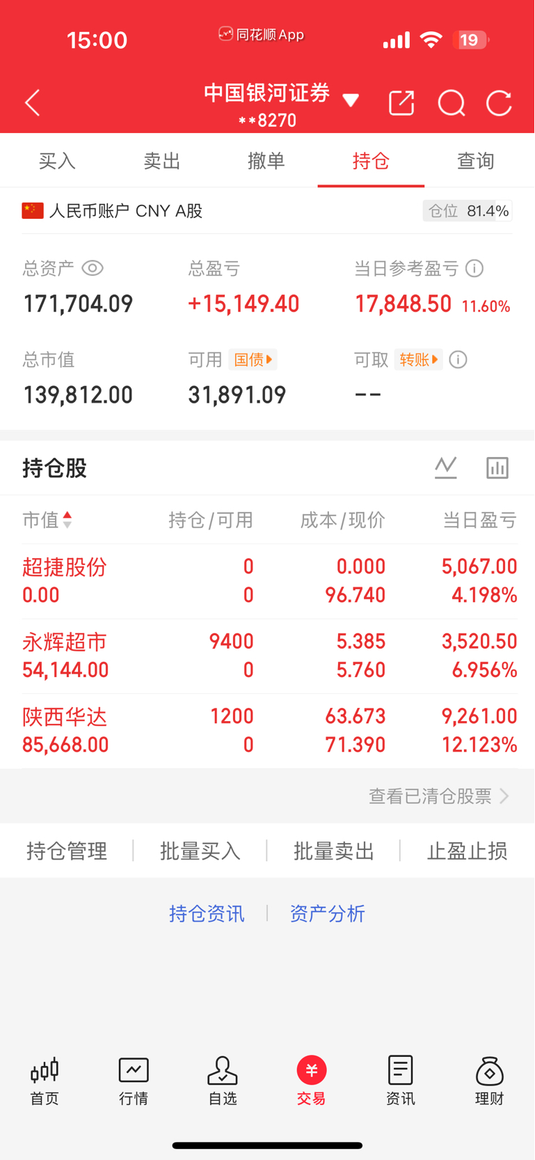 居然还有惊喜啊看吧不卖超捷哪来的12个点陕西华达?不卖超捷哪来的永辉6.9个点走